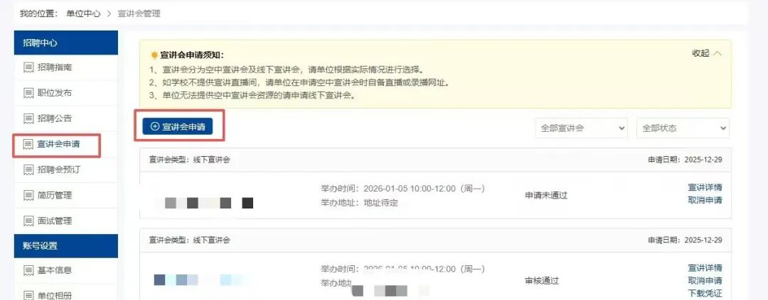 单位中心-宣讲会管理-宣讲会申请