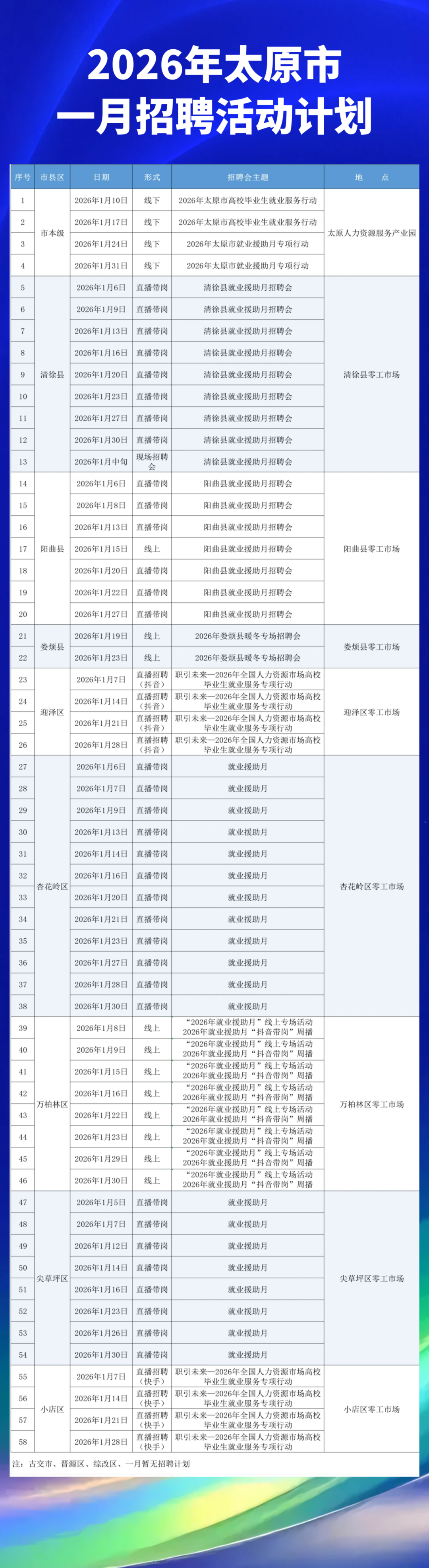2026年太原市一月招聘盛宴来袭!58场招聘活动覆盖市县线下专场 直播带岗 线上招聘齐发力求职就业选太原机会多多等你来!