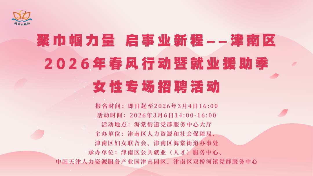 【2026年3月6日】聚巾帼力量 启事业新程——津南区2026年春风行动暨就业援助季女性专场招聘活动